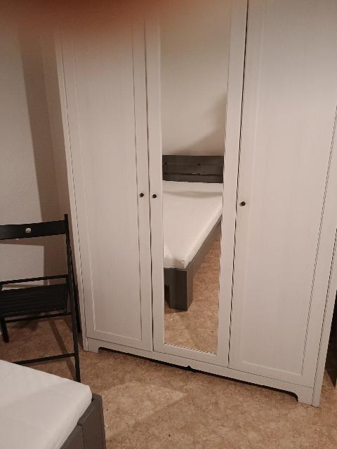 It has a private bathroom with shower , wardrobe, double-bed (140x200), desk/dining table,